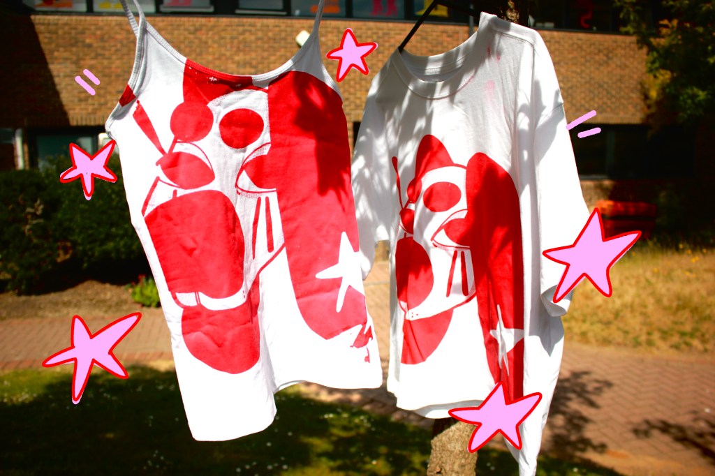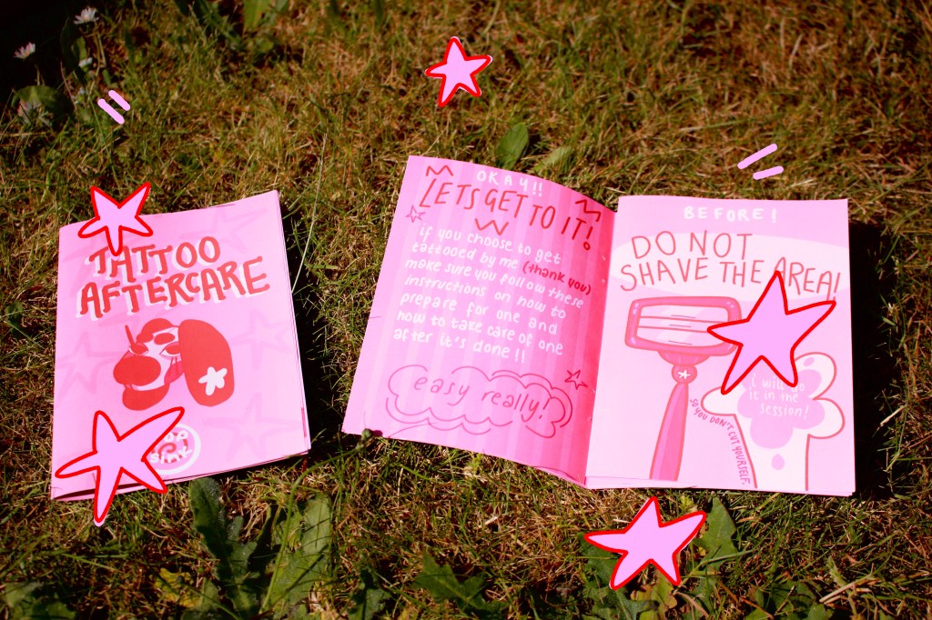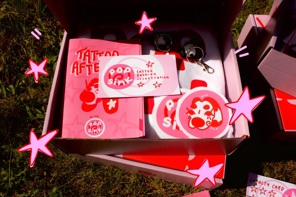 includes: business cards, keyrings, stickers, shirts and a zine.